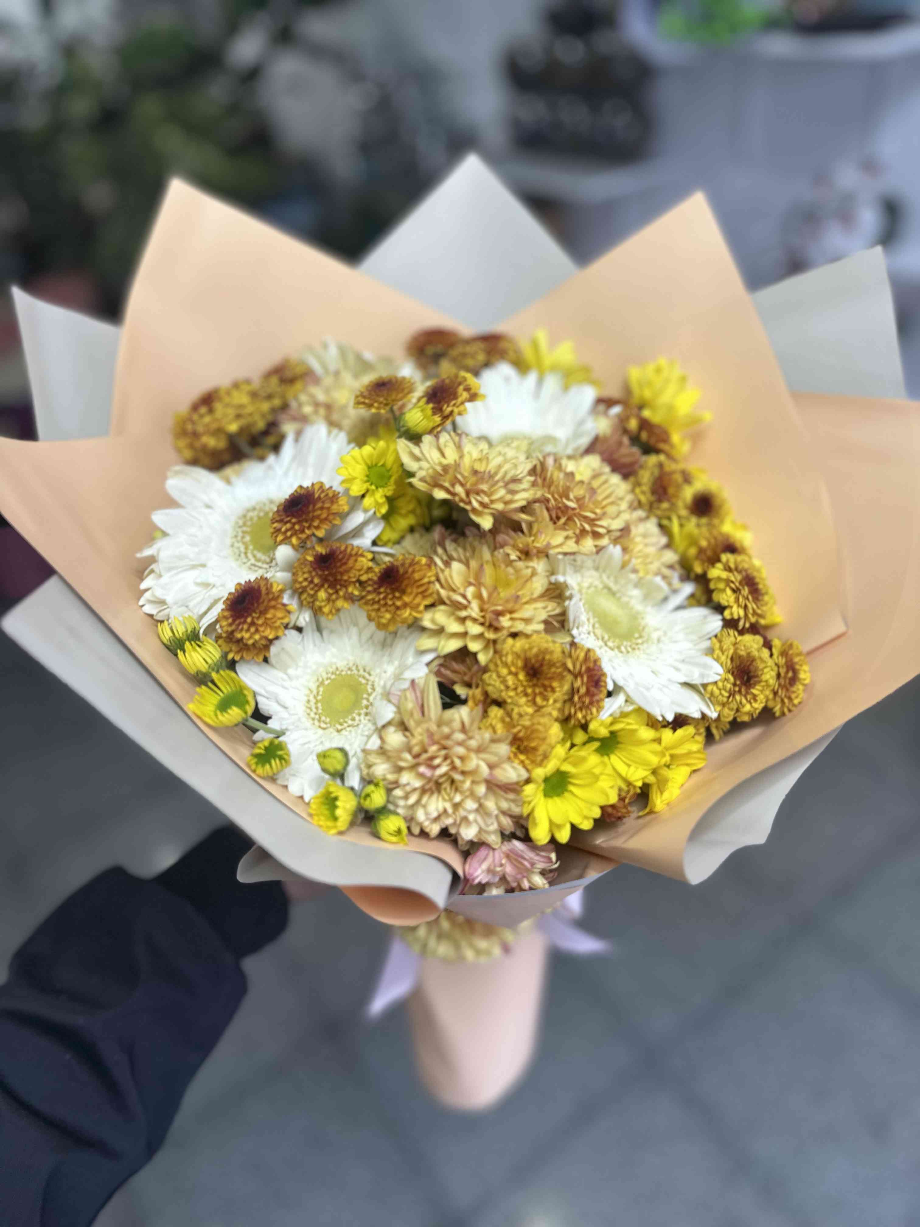 Yeşil Kahve Ambalajlı Papatya Buketi – Nizip Çiçekçi